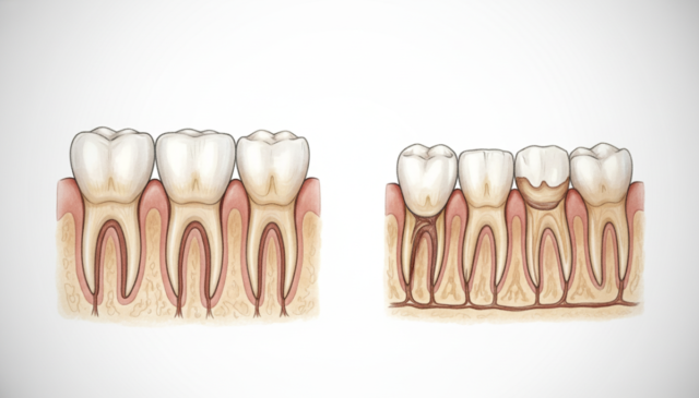 食べ物を十分に噛み砕けないことで、消化器官への負担が増加し、栄養の吸収効率も悪くなります。また、咬み合わせのバランスが悪いと、顎関節に過剰な負担がかかり、顎関節症を引き起こす可能性もあります。