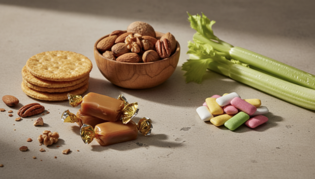 「ナッツ類」についても同様の注意が必要です。アーモンドやクルミなどは小さくても噛むと硬く、装置に予想以上の負荷を与えてしまいます。また、「氷」やアイスの塊を歯で砕くことは絶対に避けるべきです。ブラケットの接着部が剥がれる恐れがあるからです。