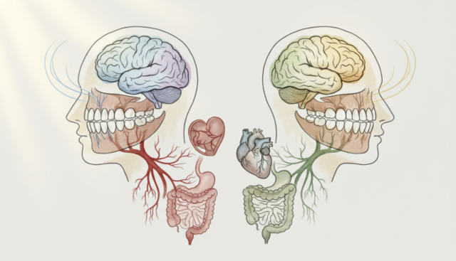 顎関節症になると、口を開けるときに痛みや音がしたり、口が大きく開かなくなったりします。また、噛み合わせの悪さは、首や肩の筋肉にも影響を与え、慢性的な肩こりや頭痛の原因となることがあります。